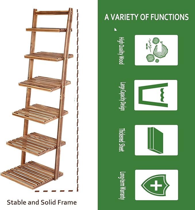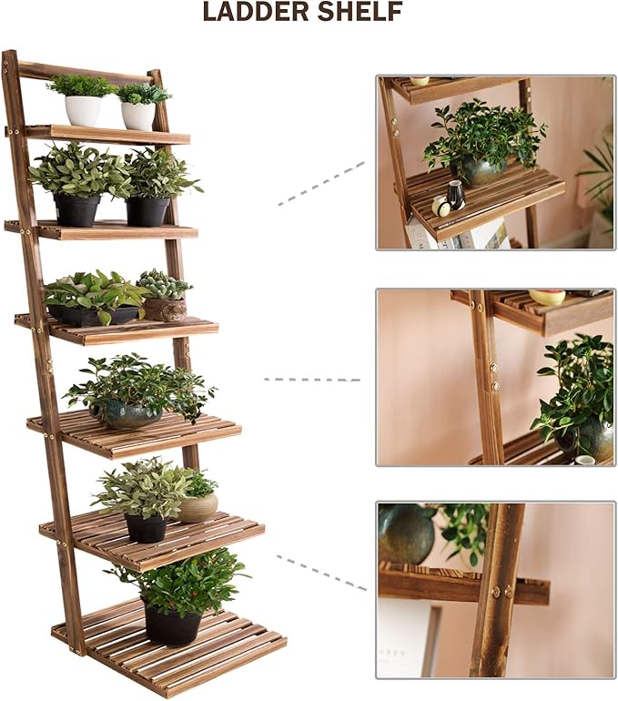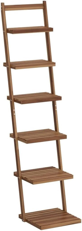 HYNAWIN 6 tier bookshelf ladder shelf-Large Bamboo Storage Shelves Wall Leaning Shelf for Garage, Kitchen, Office,Corner Display Bookcase