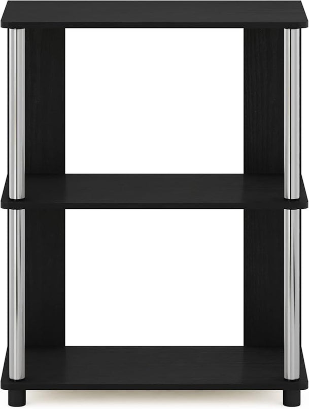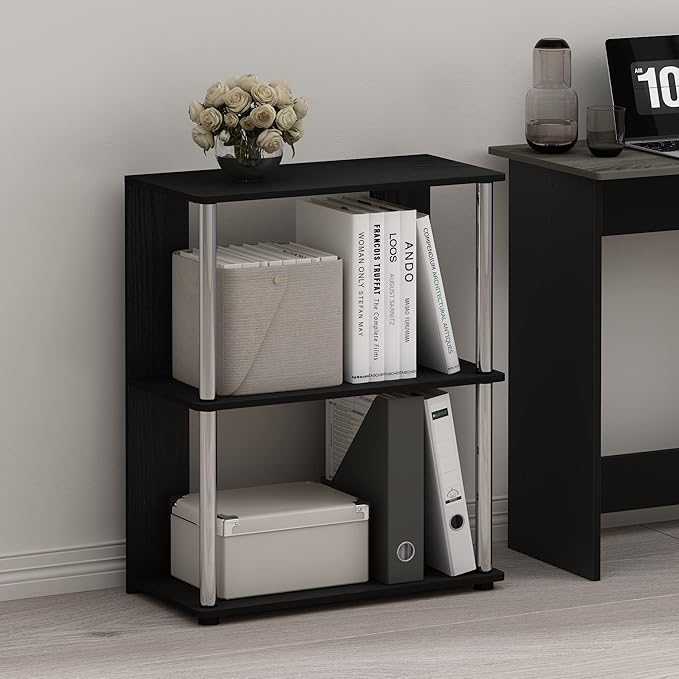 Furinno Jaya Simple Design 3-Tier Bookcase/Bookshelf/Display Rack with Stainless Steel Tubes, Americano