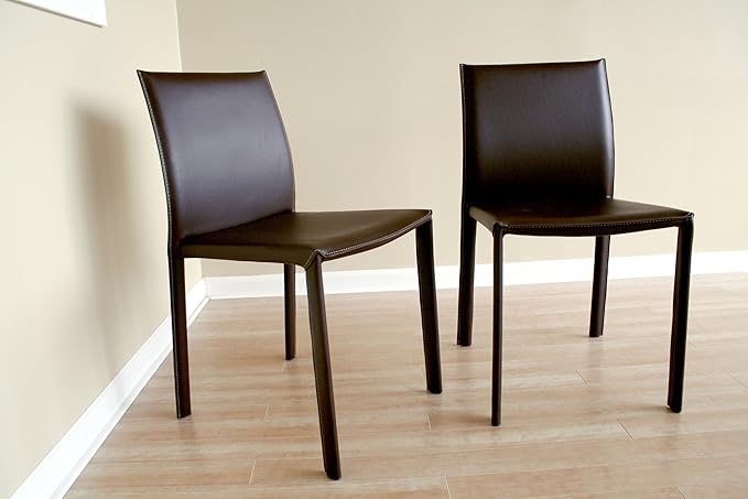 Baxton Studio Leather Dining Chair, Set of 2, Espresso Brown
