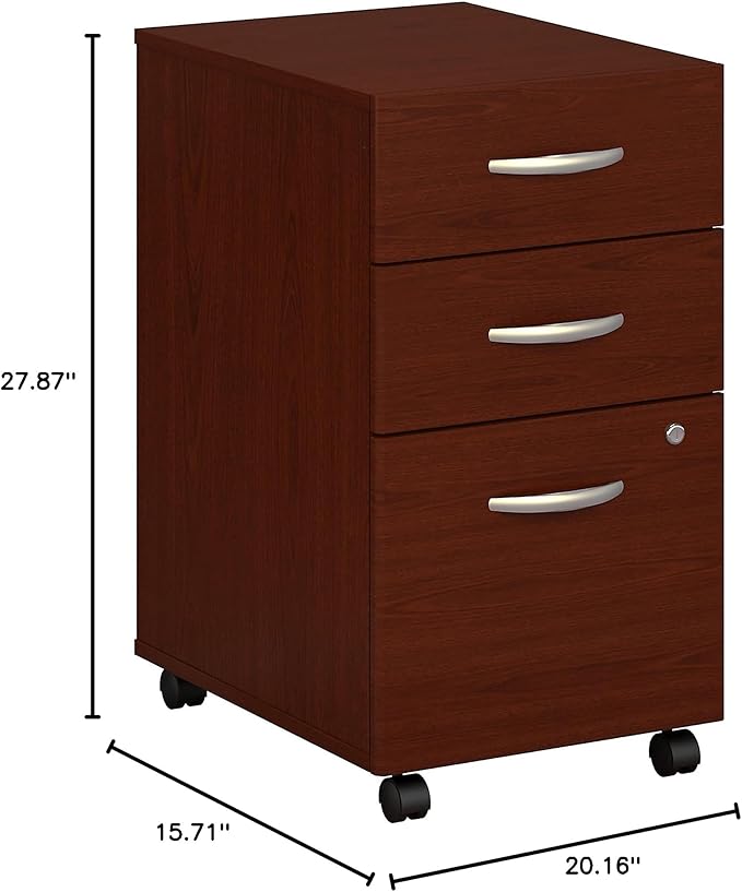 Bush Business Furniture Series C Mobile Under Desk Arrives Fully Assembled | Stylish 3 Drawer File Cabinet for Professional or Home Office, Mahogany