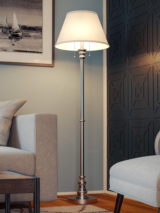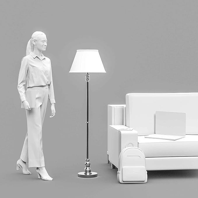 About This Linen Imported Modern Floor Lamp: The elegant indoor floor lamp with a brushed steel finish and a white...
