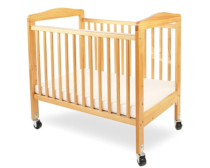 LA Baby Compact Non-Folding Wooden Window Crib, Natural