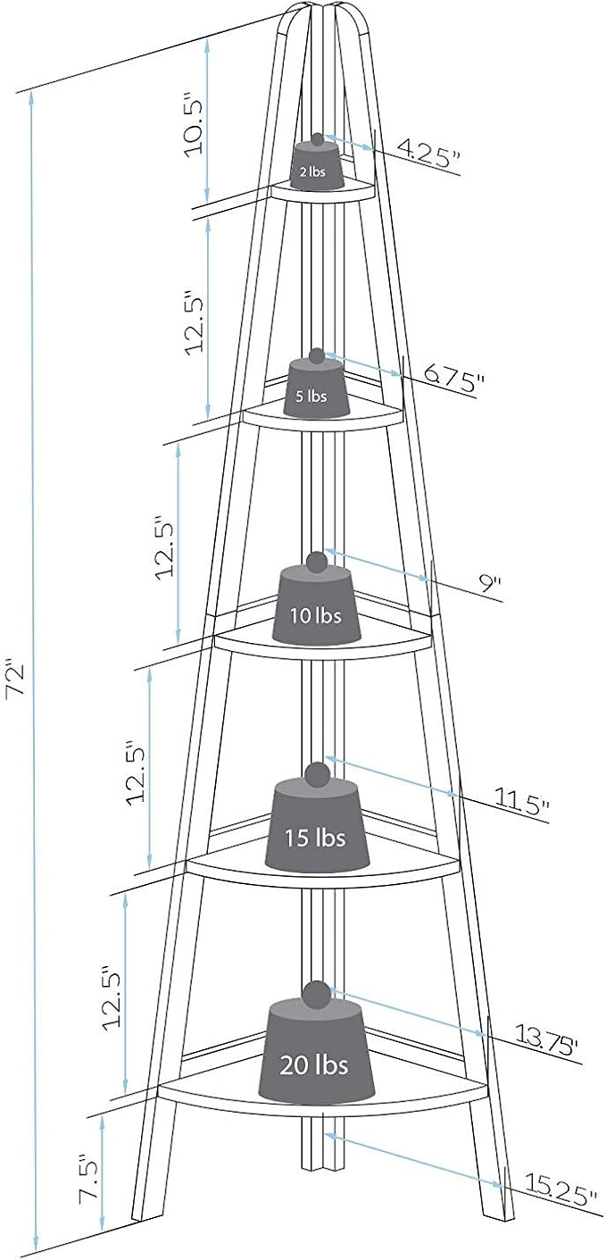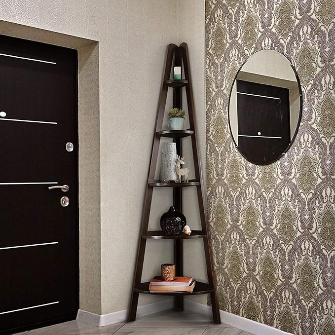 Casual Home 5-Shelf Corner Ladder Bookcase, Espresso