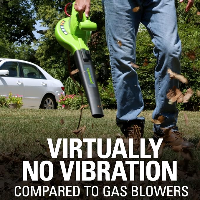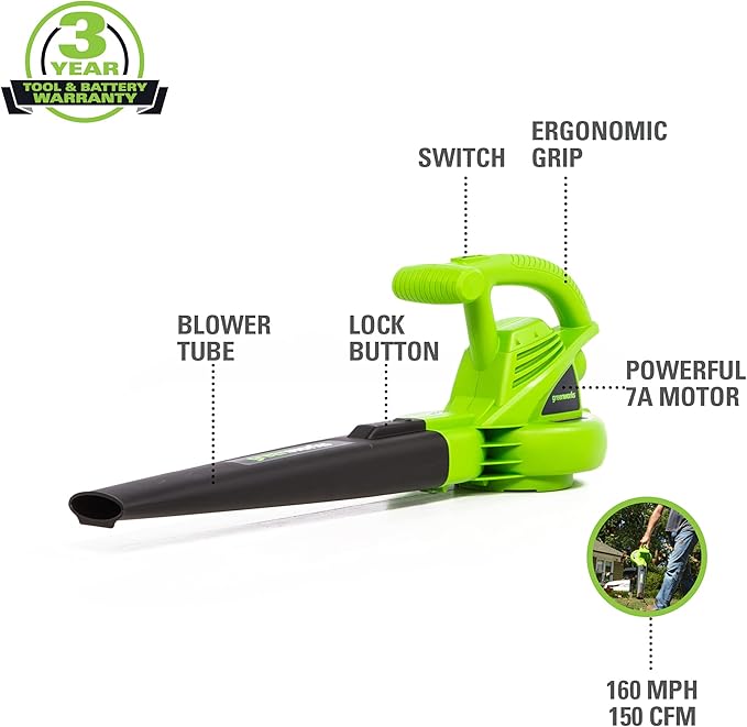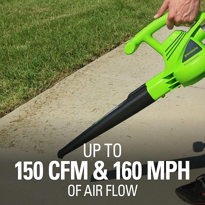 Greenworks 7 Amp 160 MPH/150 CFM Single Speed Electric Blower, 24012, green