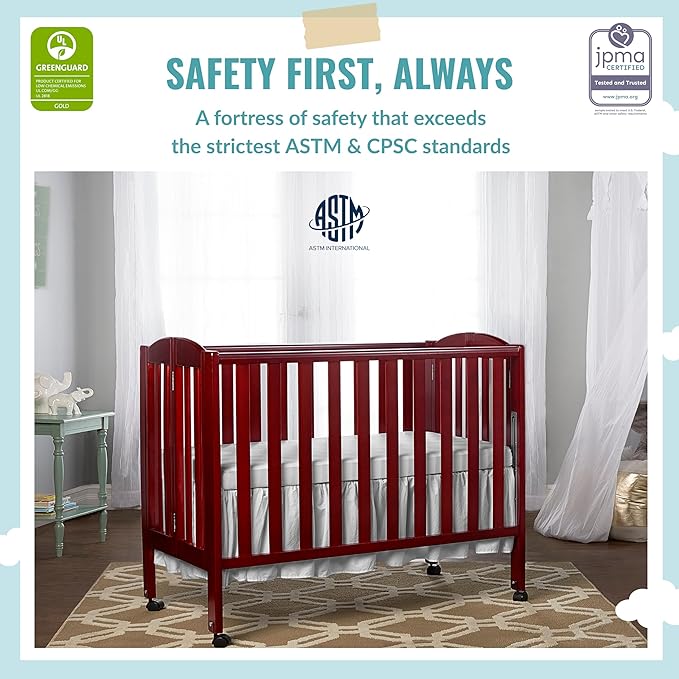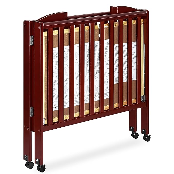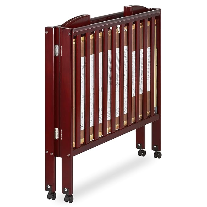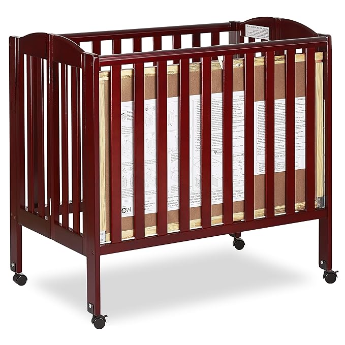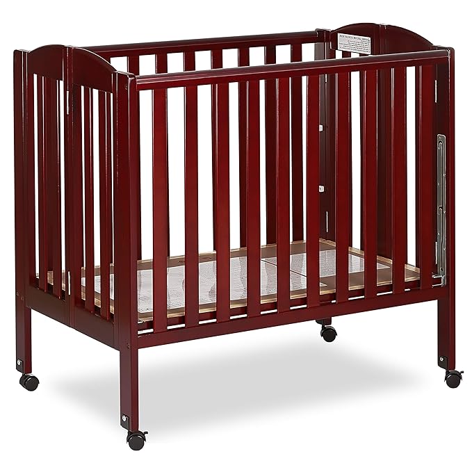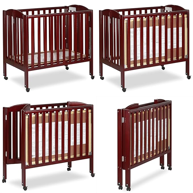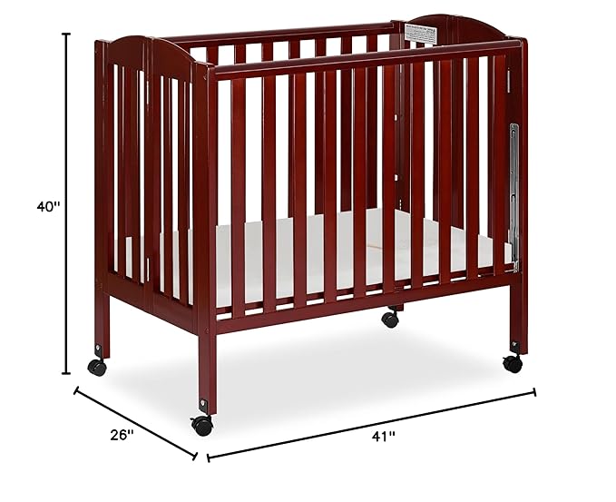 Dream On Me 3 in 1 Portable Folding Stationary Side Crib in Cherry, Greenguard Gold Certified, Safety Wheel with Locking Casters, Convertible, 3 Mattress Heights