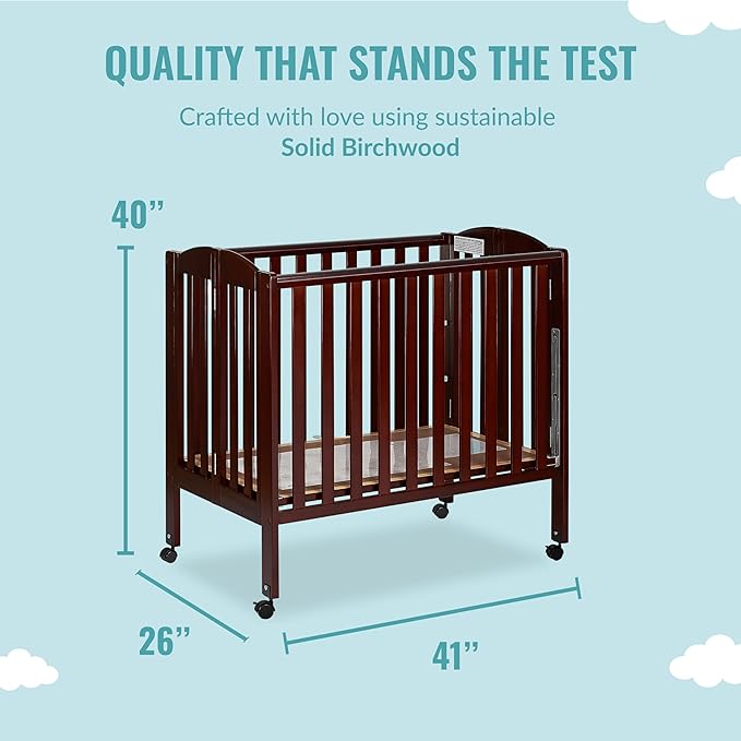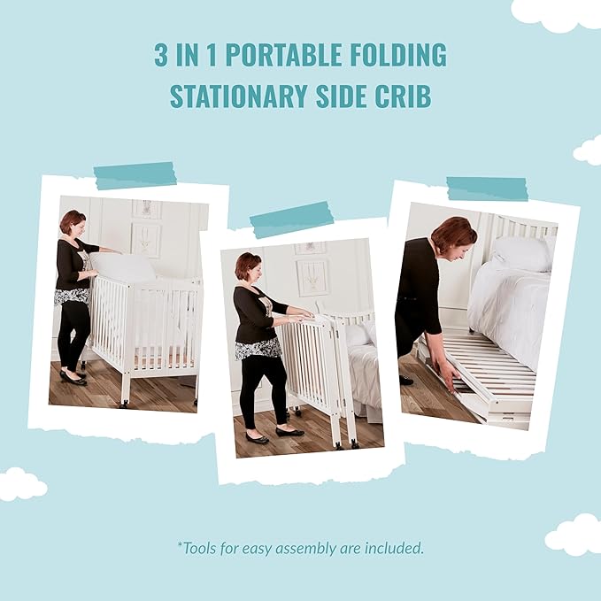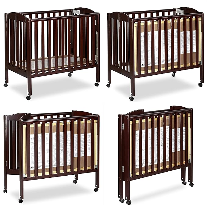 3 in 1 Portable Folding Stationary Side Crib in Espresso, Greenguard Gold Certified , 41x26x40 Inch (Pack of 1)