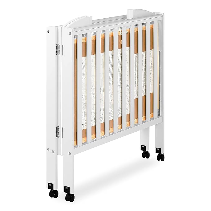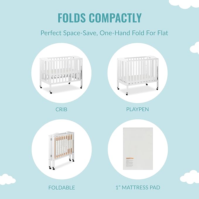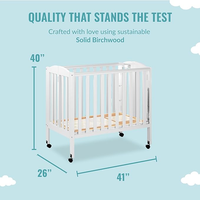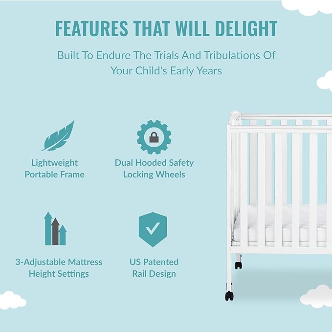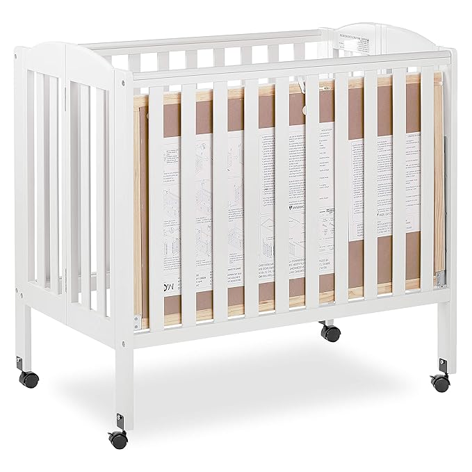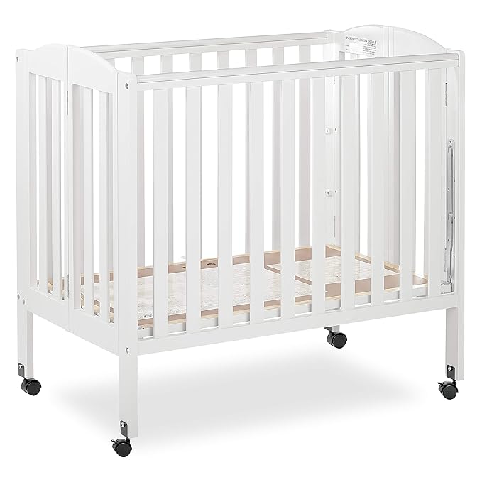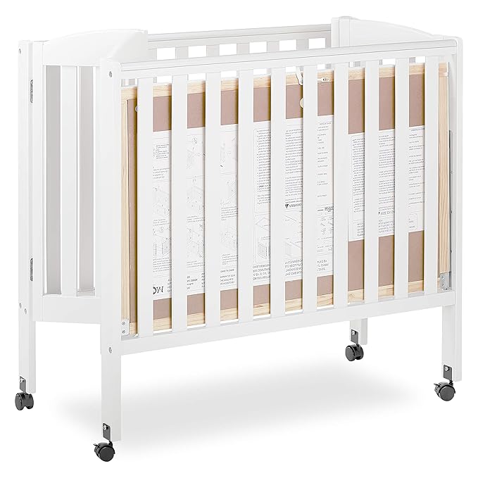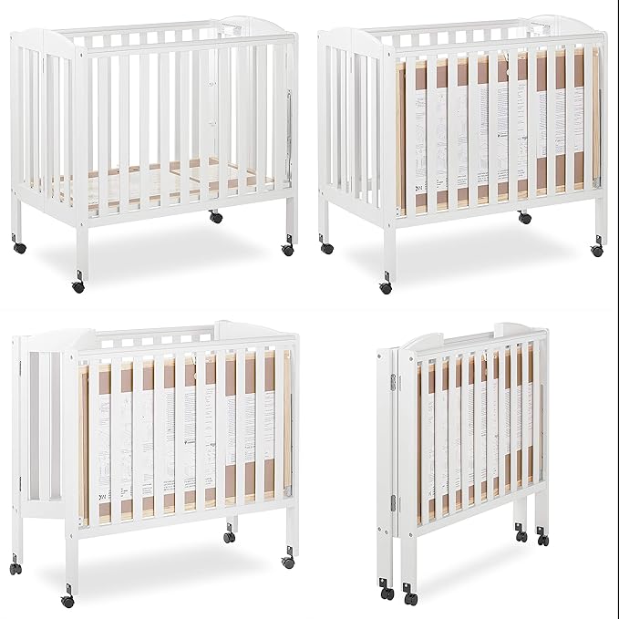 3 in 1 Portable Folding Stationary Side Crib in White, Greenguard Gold Certified, Safety Wheel with Locking Casters, Convertible, 3 Mattress Heights