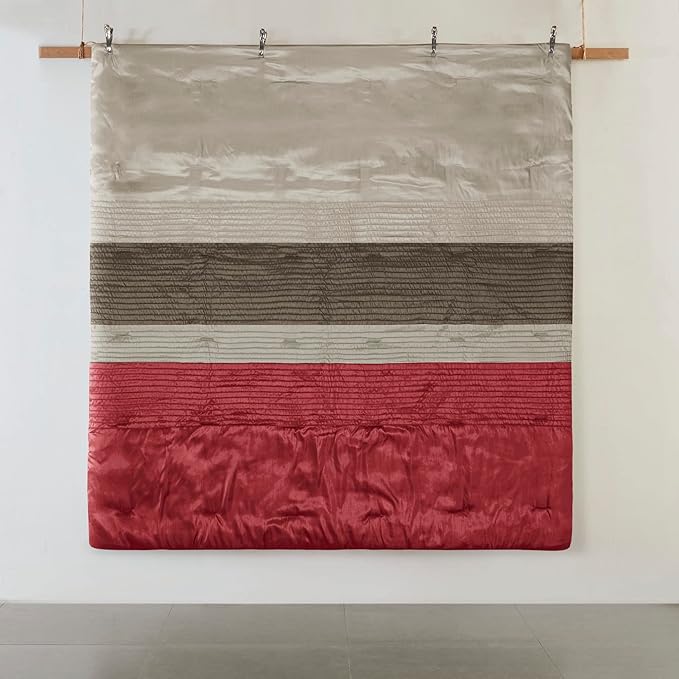 Madison Park Amherst Faux Silk Comforter Set-Casual Contemporary Design All Season Down Alternative Bedding, Matching Shams, Bedskirt, Decorative Pillows, Cal King(104"x92"), Red, 7 Piece (MP10-039)