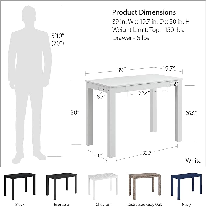 About This Update your home office or living room with the Ameriwood Home Parsons Computer Desk with Drawer Preassembled desktop...