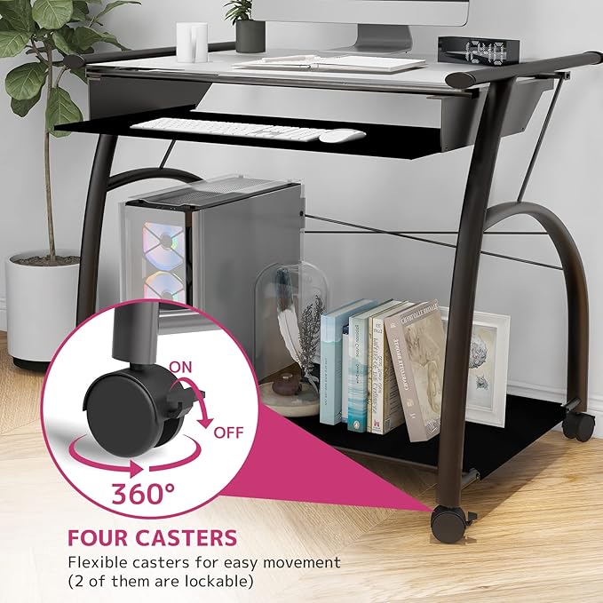 Acme Vincent Glass Top Computer Cart with Pull-out Keyboard in Pewter