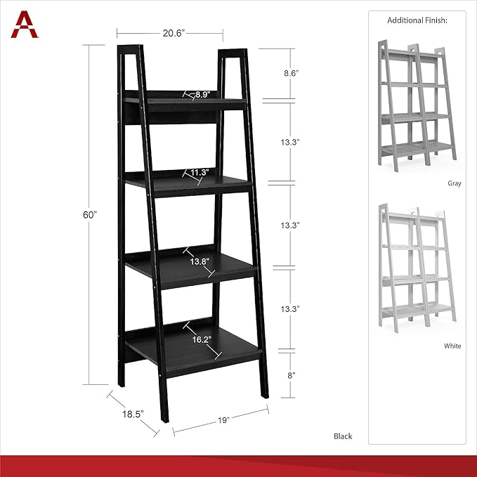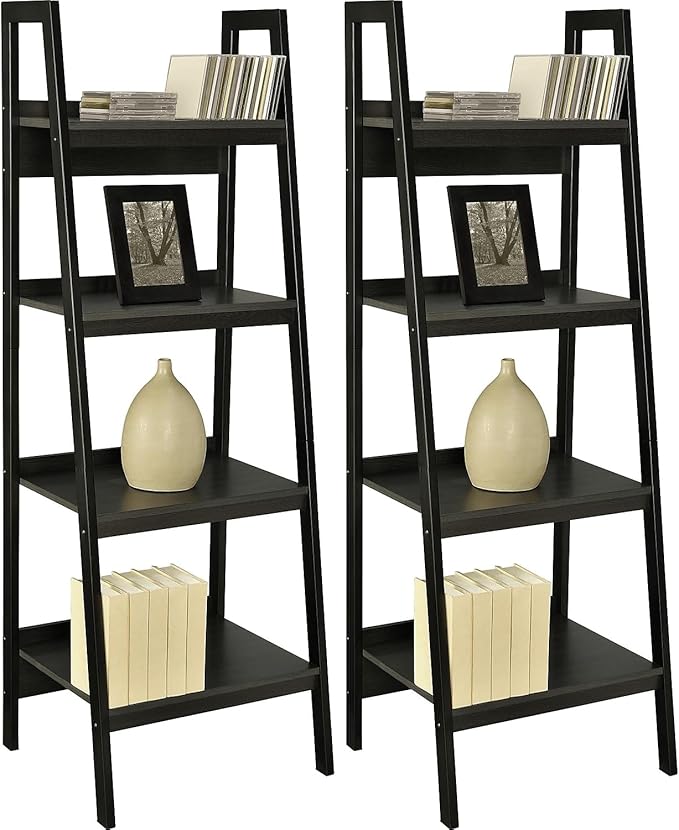 About This Place the 2 ladder-style bookshelves in the Ameriwood Home Lawrence 4-Shelf Ladder Bookcase Buddle side by side or...