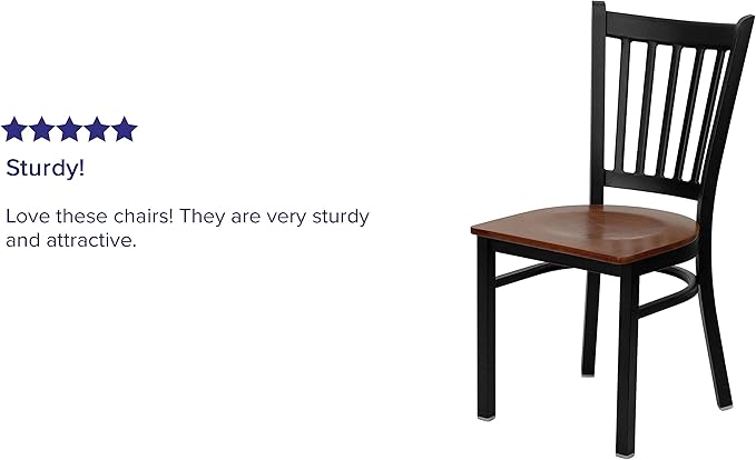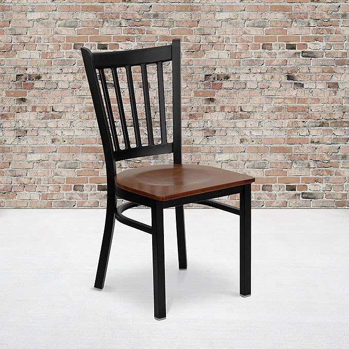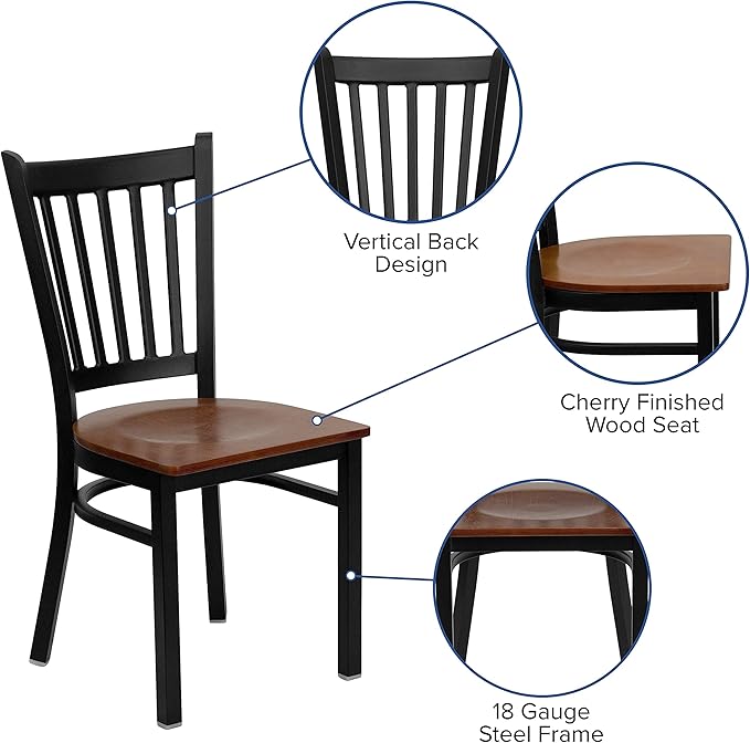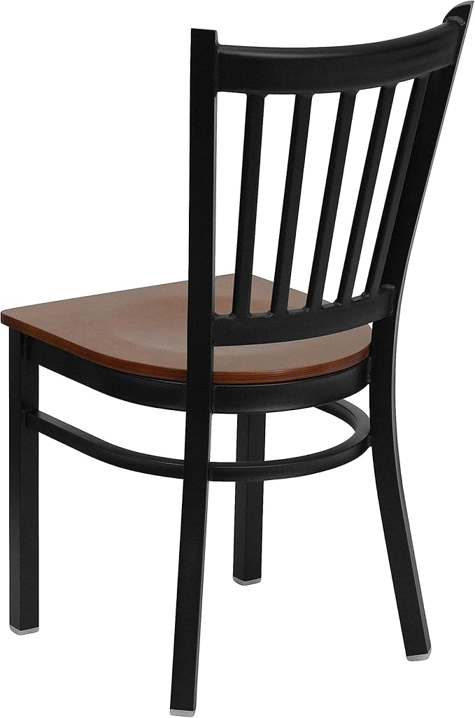 Flash Furniture HERCULES Series Black Vertical Back Metal Restaurant Chair - Cherry Wood Seat
