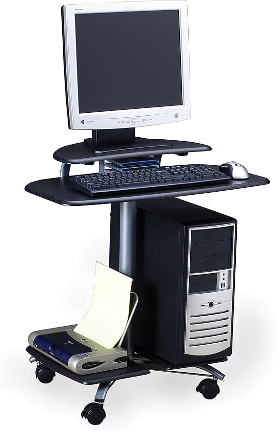 About This Wide worksurface accommodates keyboard and mouse Lower platforms hold printer and CPU Mobile PC Station is designed for...