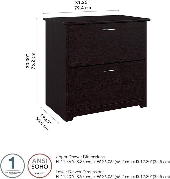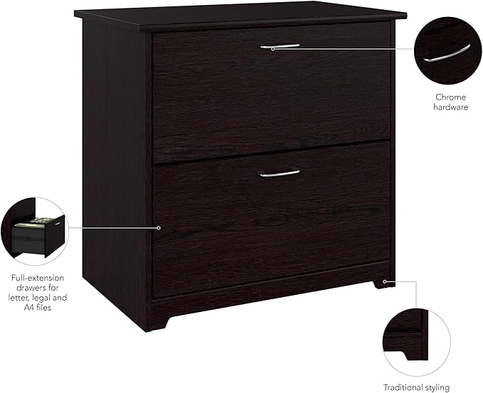 Bush Business Furniture Cabot 2 Drawer Lateral File Cabinet | Letter, Legal, and A4-size Document Storage for Home Office, 32W, Espresso Oak