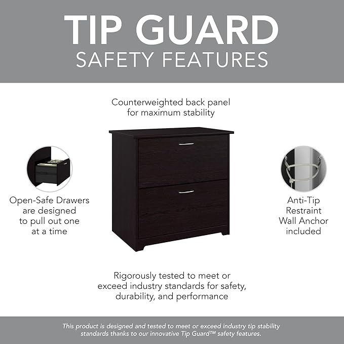 About This Engineered Wood STORAGE MADE STYLISH: Elevate your office decor with Bush Furniture's Cabot Lateral Filing Cabinet. This cabinet...