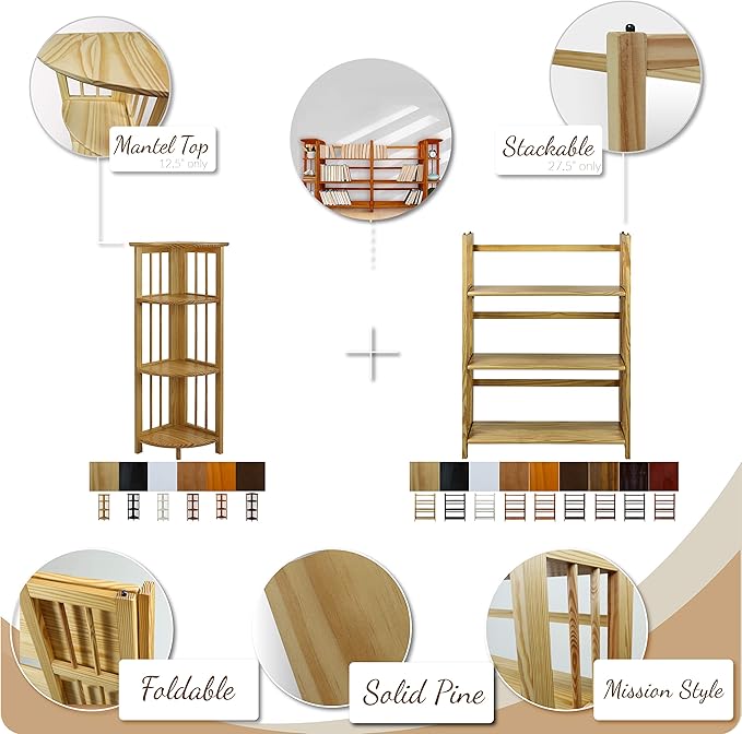 Casual Home 3 Shelf Folding Stackable Bookcase, 27.5" Wide, Espresso