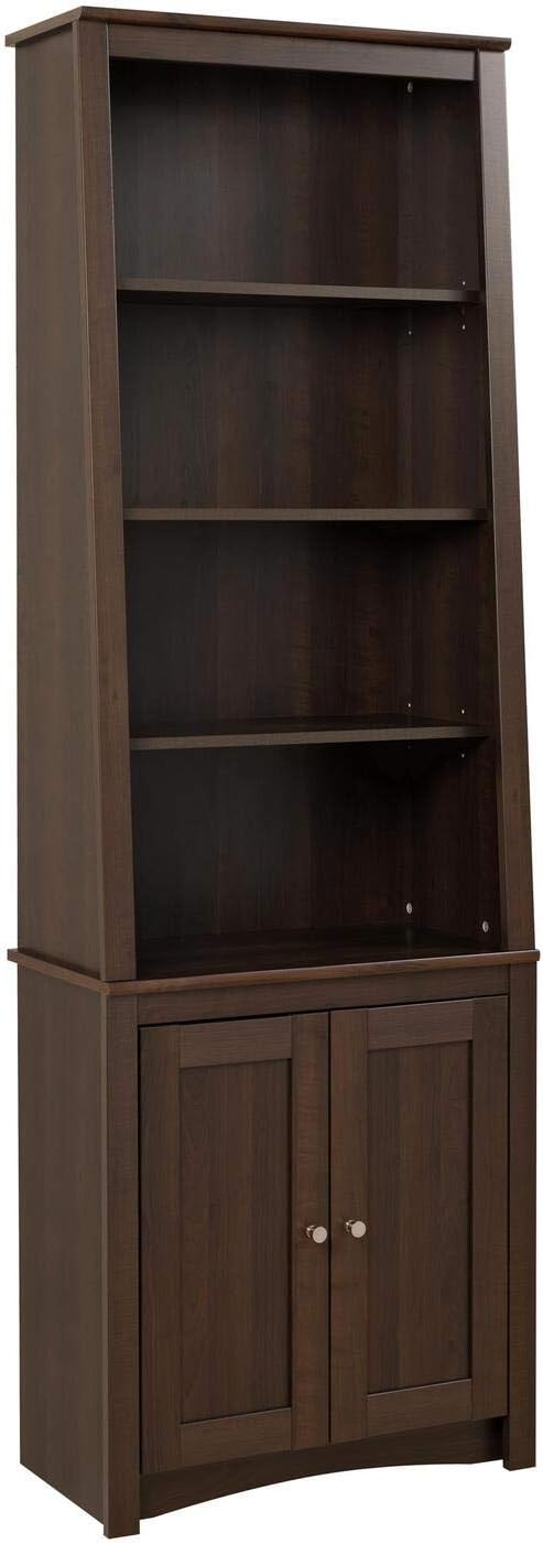 PREPAC Espresso Tall Slant-Back Bookcase with 2 Shaker Doors