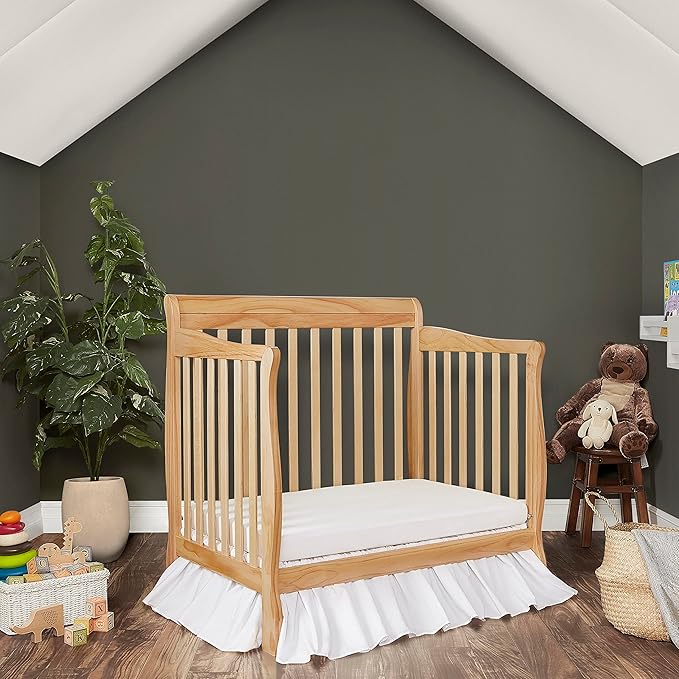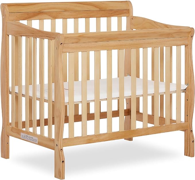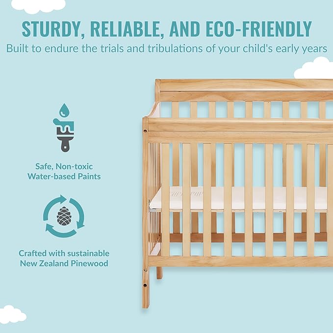 Aden 4-in-1 Convertible Mini Crib In Natural, Greenguard Gold Certified, Non-Toxic Finish, New Zealand Pinewood, With 3 Mattress Height Settings