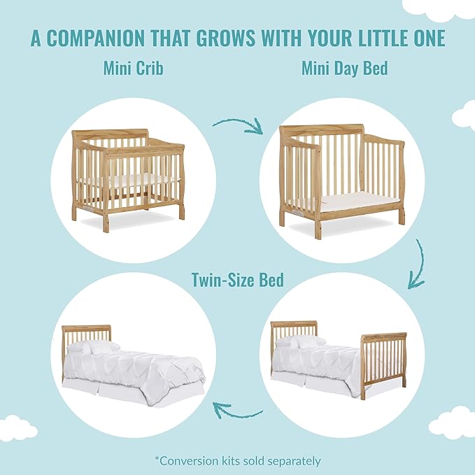 About This LONG LASTING - Made of New Zealand pinewood, the Aden 4-in-1 Convertible Mini Crib is both durable and...