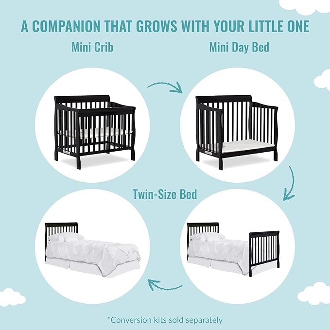 About This LONG LASTING - Made of New Zealand pinewood, the Aden 4-in-1 Convertible Mini Crib is both durable and...