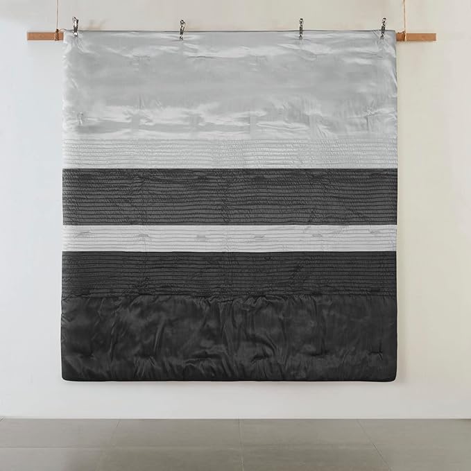 Madison Park Amherst Faux Silk Comforter Set-Casual Contemporary Design All Season Down Alternative Bedding, Matching Shams, Bedskirt, Decorative Pillows, Cal King(104"x92"), Black, 7 Piece (MP10-227)