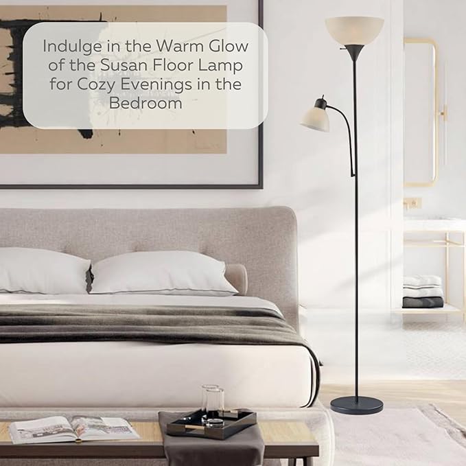 About This This Pole Lamp Features A Matte Black Finish With A White Plastic Dome Lamp Shade. The Lamps Gently...