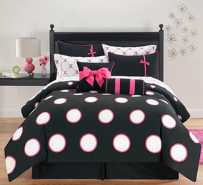 VCNY Home - Full Bed in a Bag, 10-Piece Bedding Set with Matching Sheets & Bedskirt, Ideal for All Seasons, Cozy Chic Home Decor (Sophie Black/Pink, Full)
