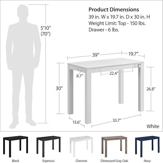 About This The simple Ameriwood Home Parsons Desk with Drawer will be your perfect home office accessory The single drawer...