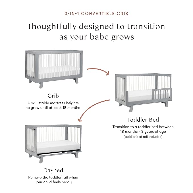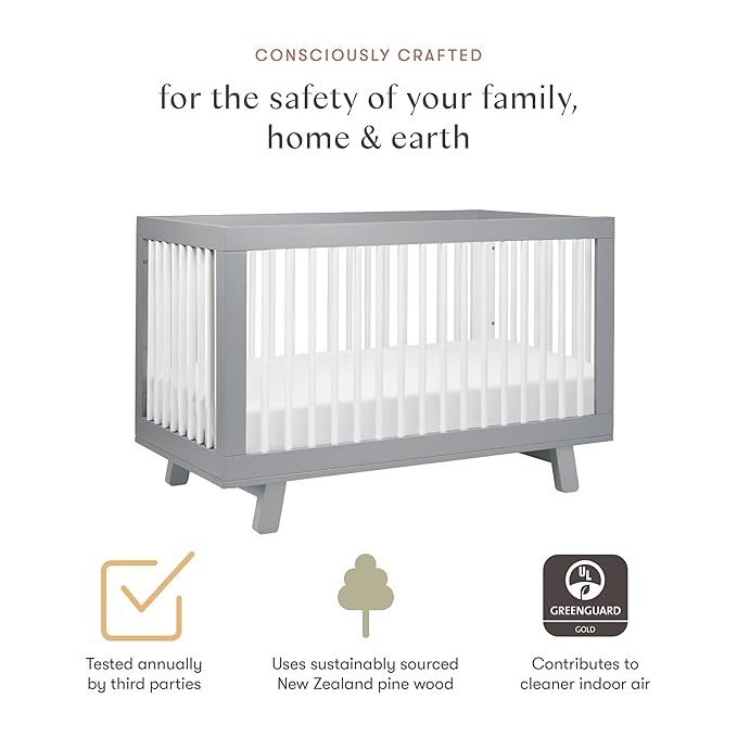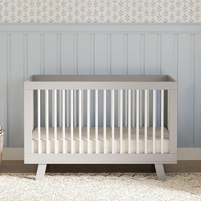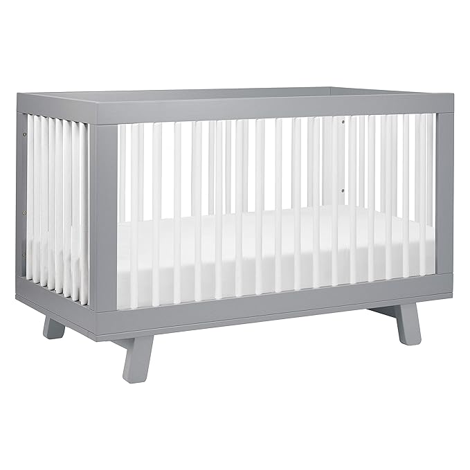 Babyletto Hudson 3-in-1 Convertible Crib with Toddler Bed Conversion Kit in Grey and White, Greenguard Gold Certified