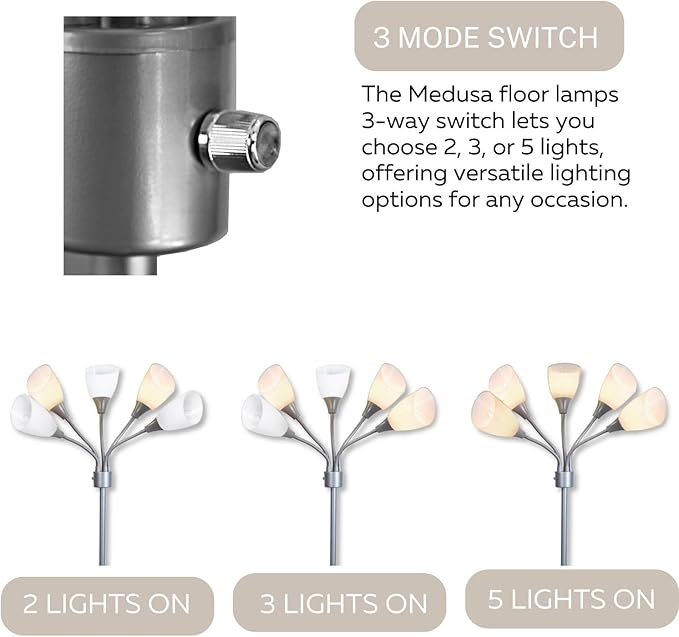 Modern Floor Lamp For Bedroom - Medusa Adjustable Floor Lamp Standing Lamp Bedroom Light With 5 Multi-colored Acrylic Reading Shades Stand Up Lamp Gooseneck Lamp Classroom Lamp Kids Floor Lamp