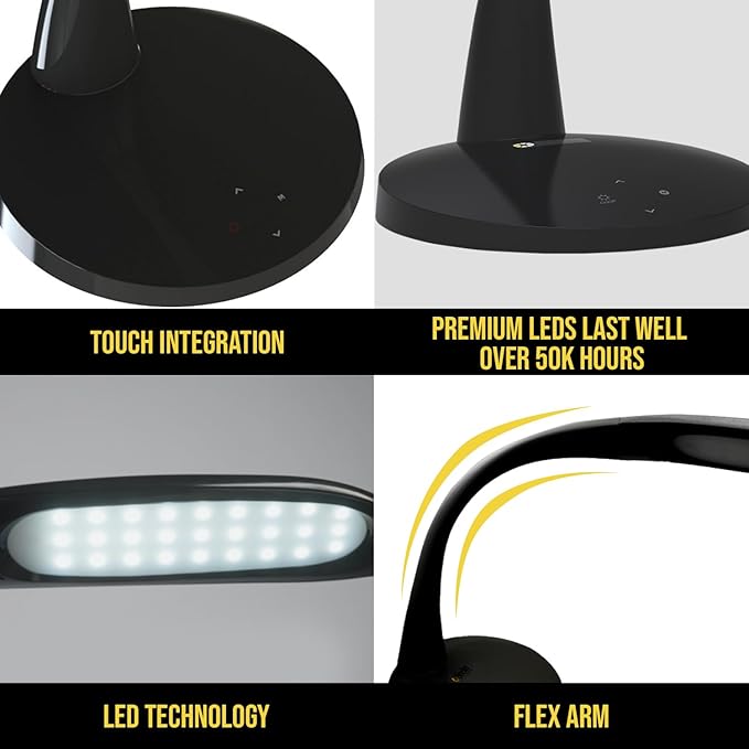 About This 10 Watt Tri-Spectrum Technology with Philips Lumiled LEDs Tactile Touch Pad and Flexible Neck 5-Step Dimmable Brightness Setting...