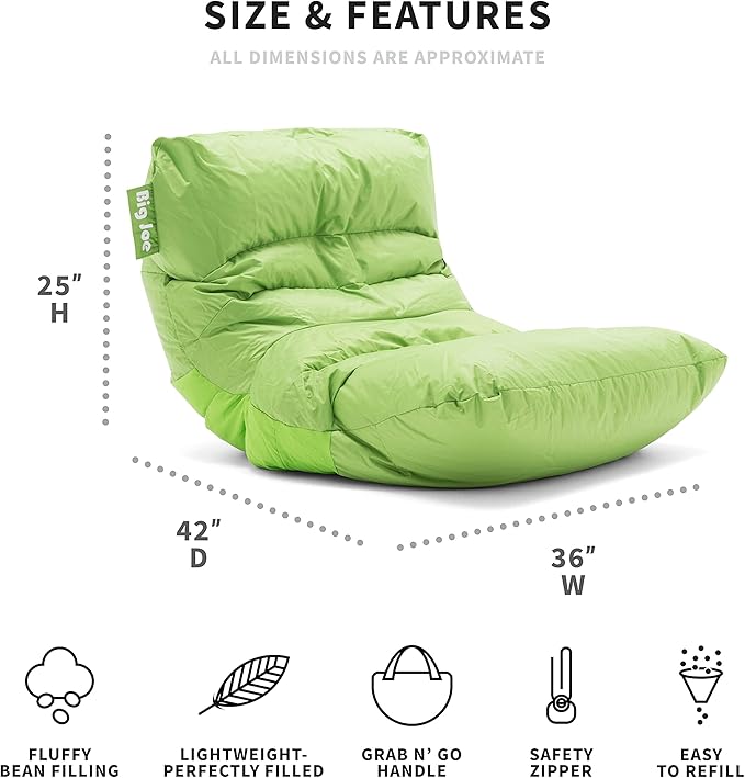 Big Joe Roma Bean Bag Chair, Spicy Lime Smartmax, Durable Polyester Nylon Blend, 3 feet