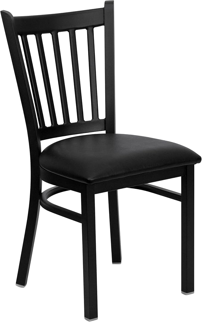 Flash Furniture 4 Pack HERCULES Series Black Vertical Back Metal Restaurant Chair - Black Vinyl Seat