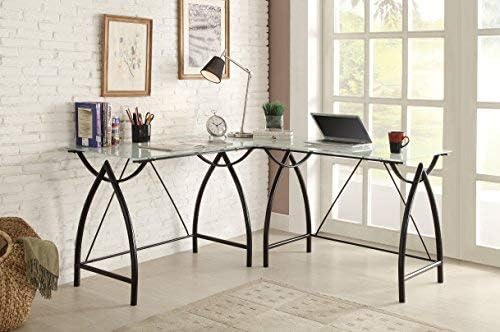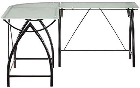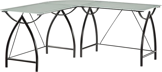 OSP Home Furnishings Newport L-Shaped Computer Desk with Frosted Tempered Glass Top and Black Powder Coated Steel Frame (NWP25L-BK)