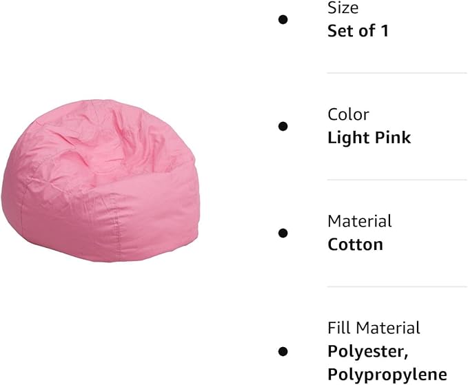 Flash Furniture Dillon Small Bean Bag Chair for Kids and Teens, Foam-Filled Beanbag Chair with Machine Washable Cover, Light Pink