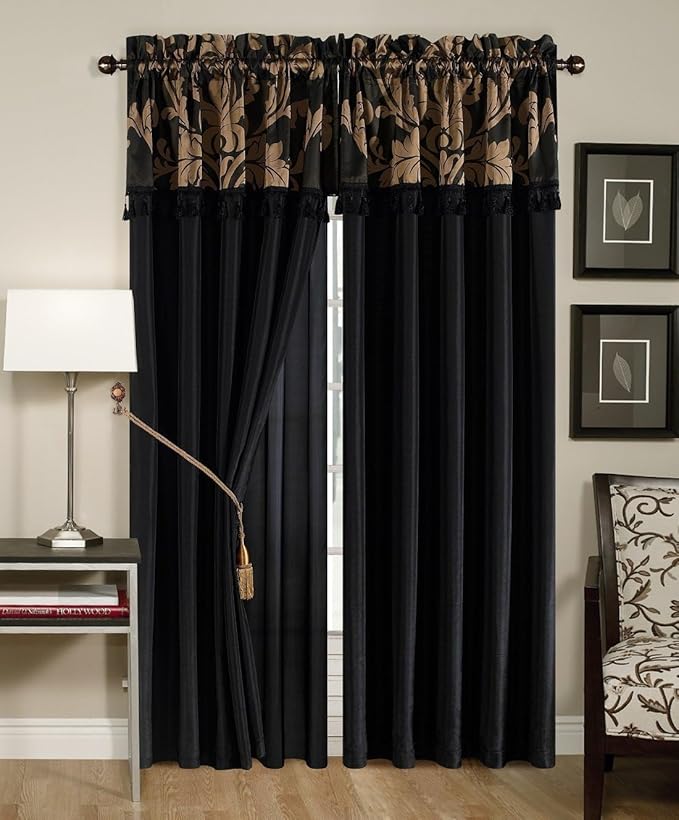Chezmoi Collection 7-Piece Royale Jacquard Floral Comforter Set, Full/Double, Black/Gold