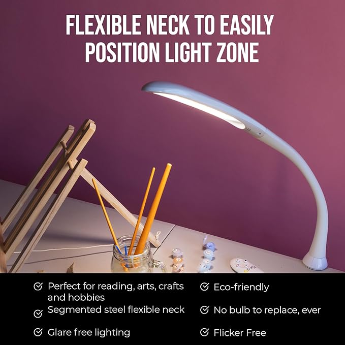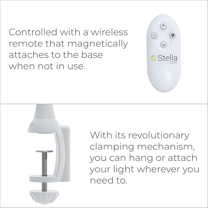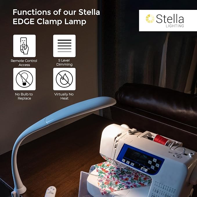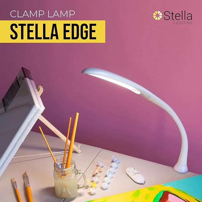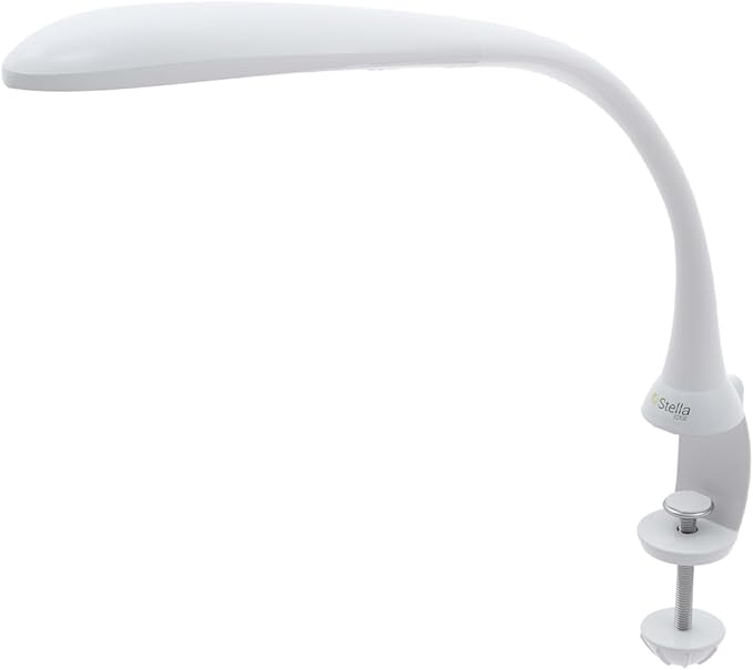 Stella Edge Premium 10W LED Desk Clamp Task Lamp - White - Adjustable Dimmable Low Vision Light - Macular Degeneration Lighting - Hobby Crafting Sewing