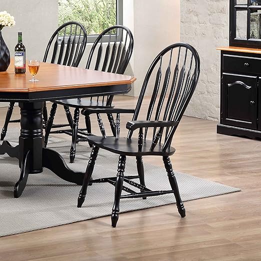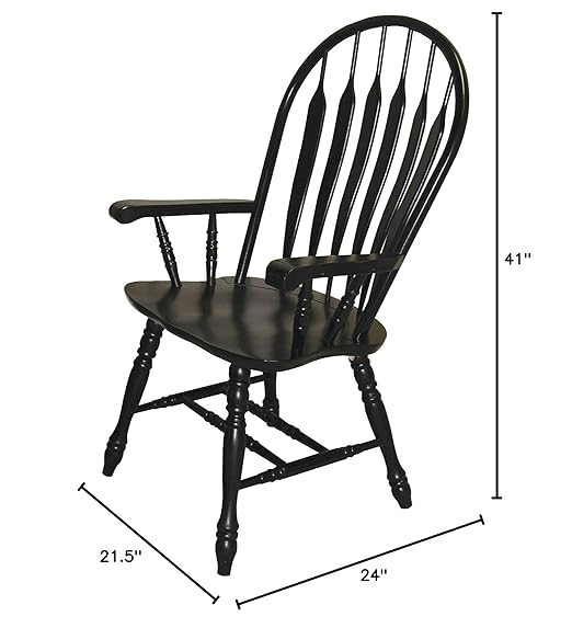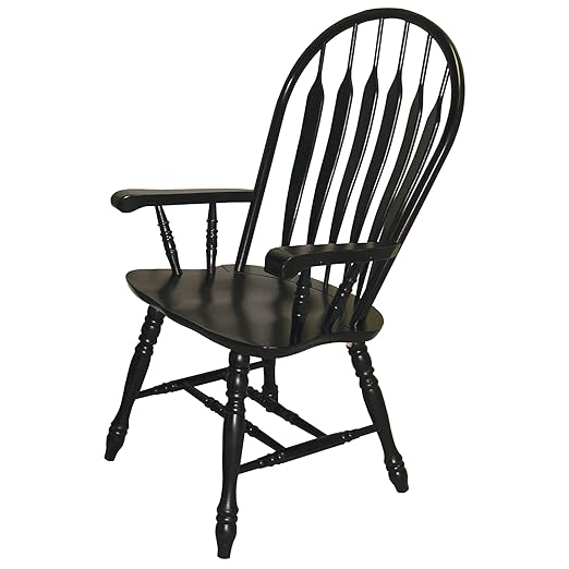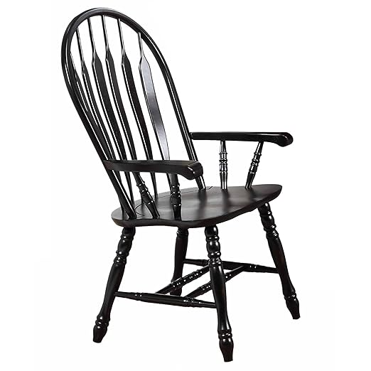 About This ✔️ traditional Windsor style Arm chair ✔️ Distressed Antique Black with Cherry finish accents ✔️ curved, comfort back...