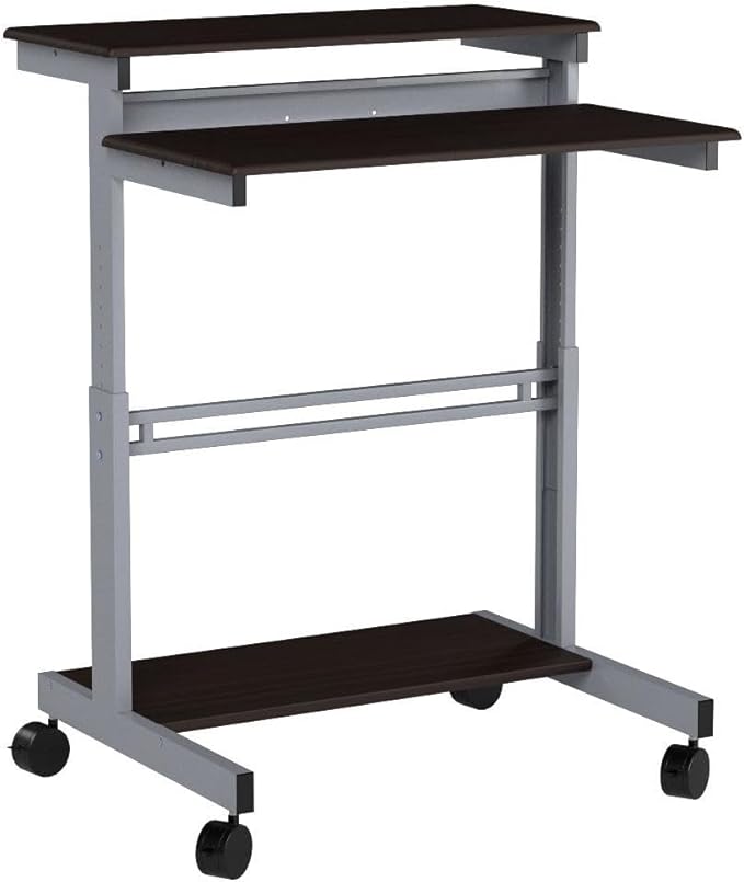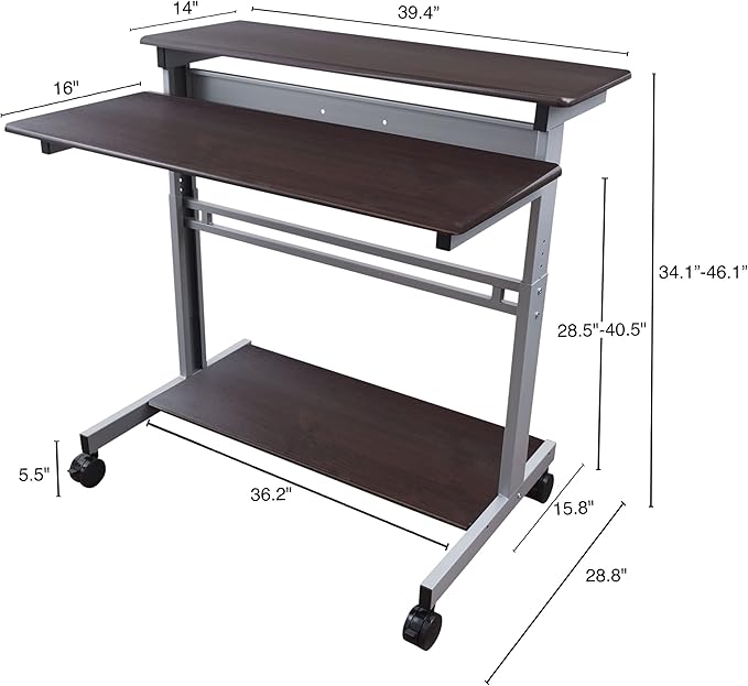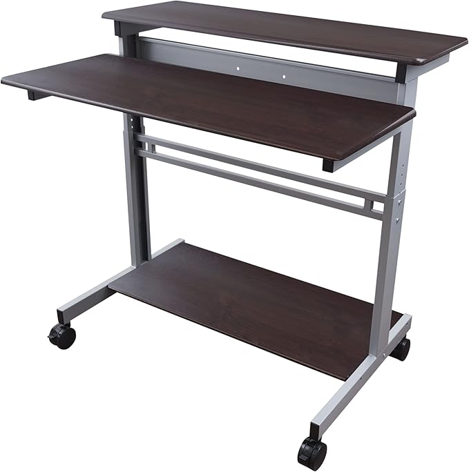 Stand Up Desk Store Rolling Adjustable Height Two Tier Standing Desk Computer Workstation (Silver Frame/Dark Walnut Top, 40" Wide)
