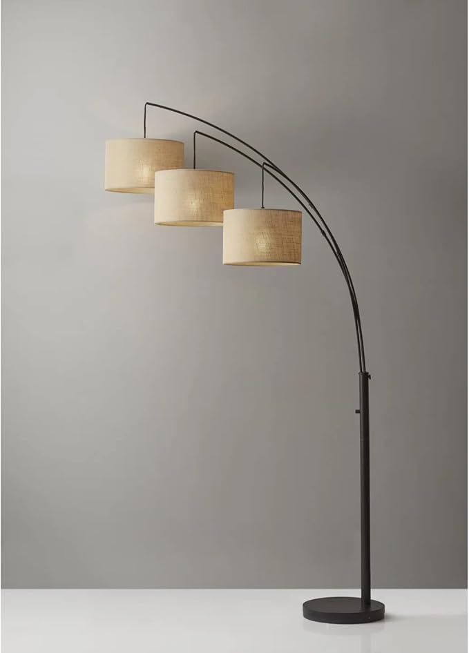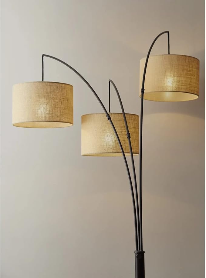 Adesso 4238-26 Trinity Arc Floor Lamp Antique Bronze FinisH, Beige Burlap . Home Decor Lamps and Light Fixtures, 82",3 Arm