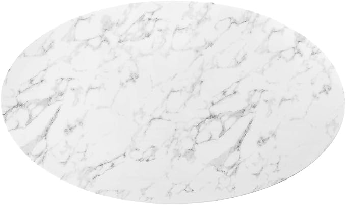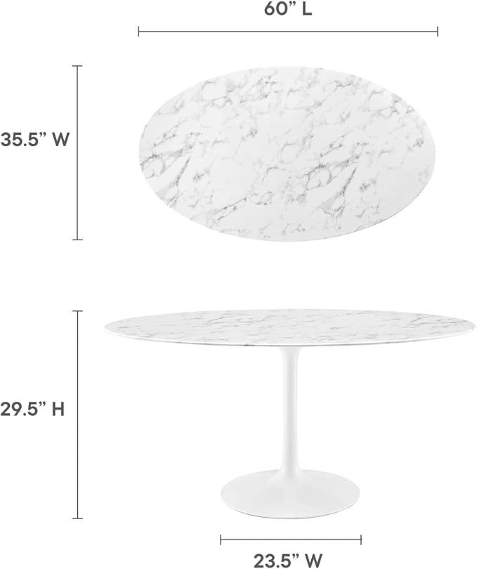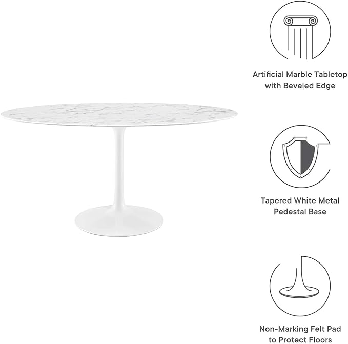 Modway Lippa 60" Oval-Shaped Mid-Century Modern Dining Table with Artificial Marble Top and White Base