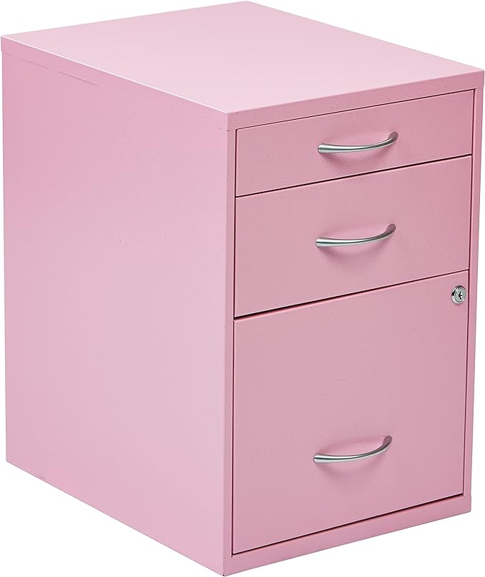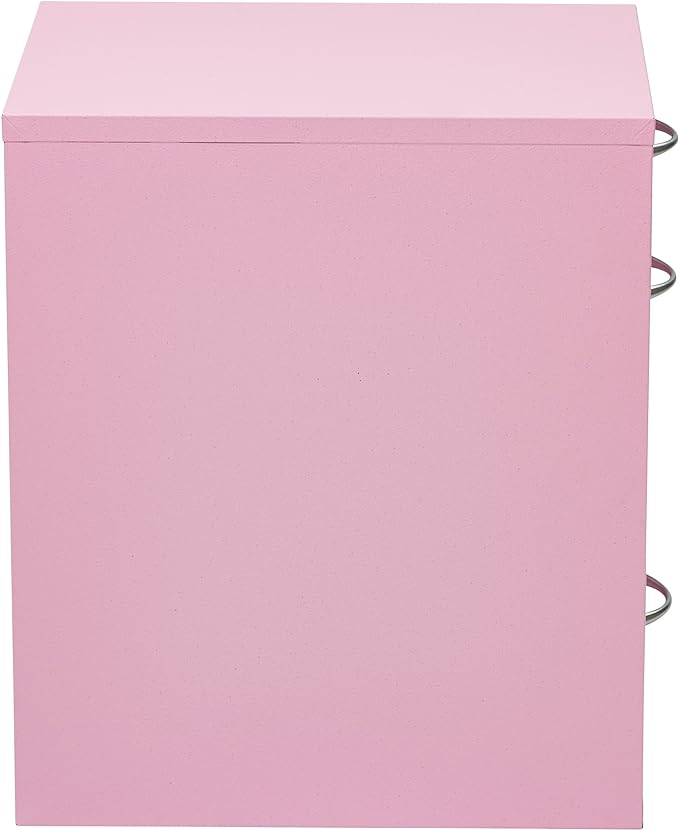 OSP Home Furnishings HPB Heavy Duty 3-Drawer Metal File Cabinet for Standard Files and Office Supplies, Pink Finish