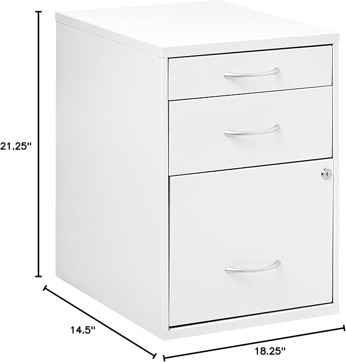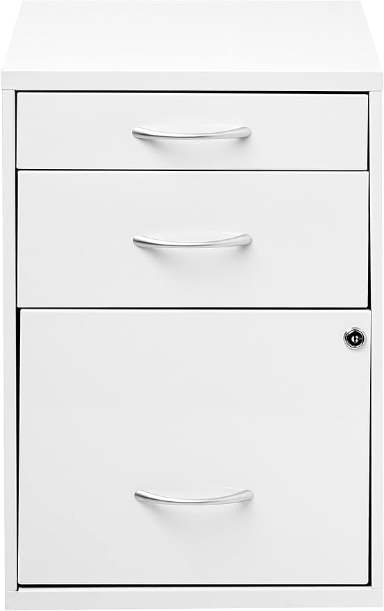 OSP Home Furnishings HPB Heavy Duty 3-Drawer Metal File Cabinet for Standard Files and Office Supplies, White Finish