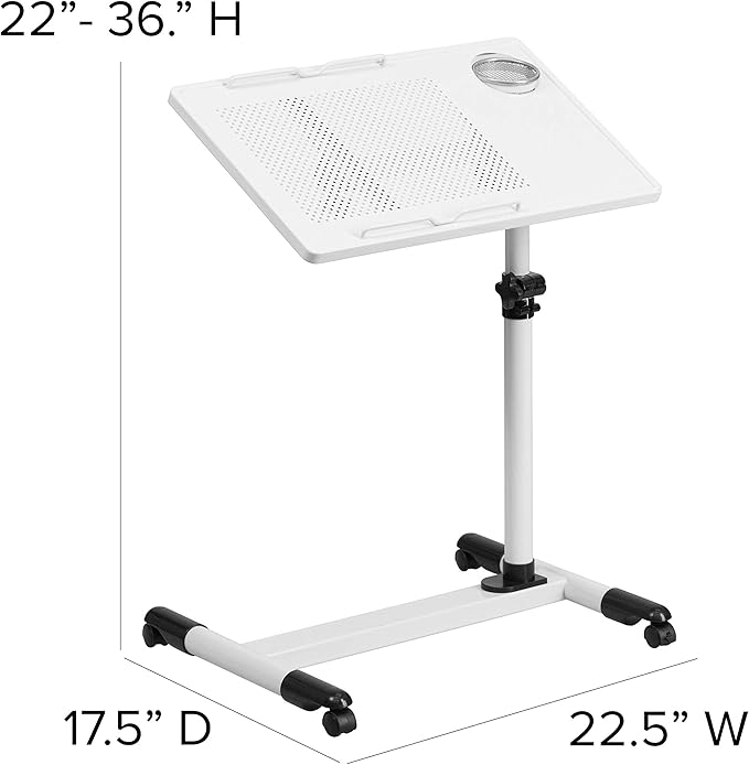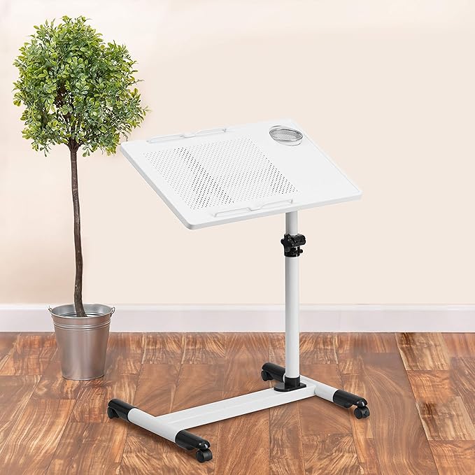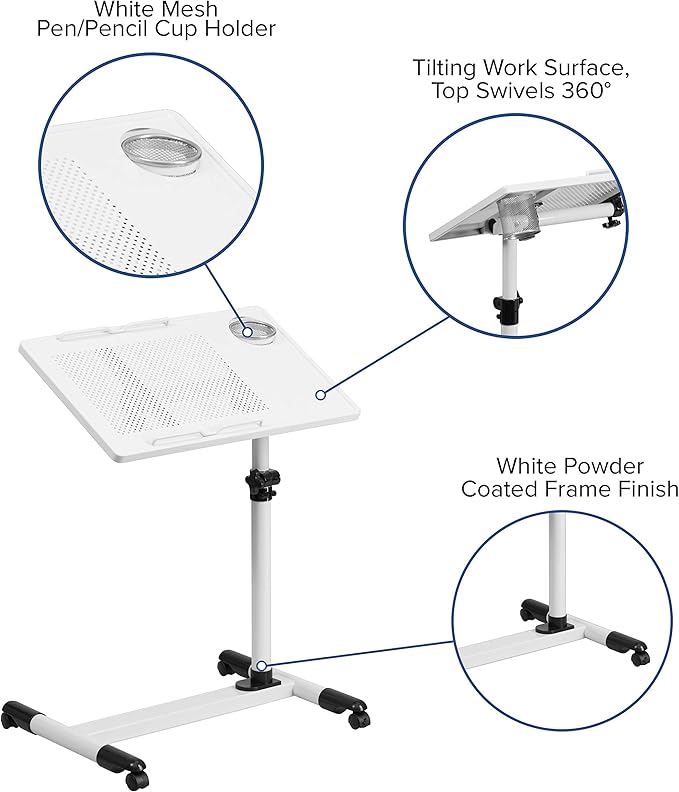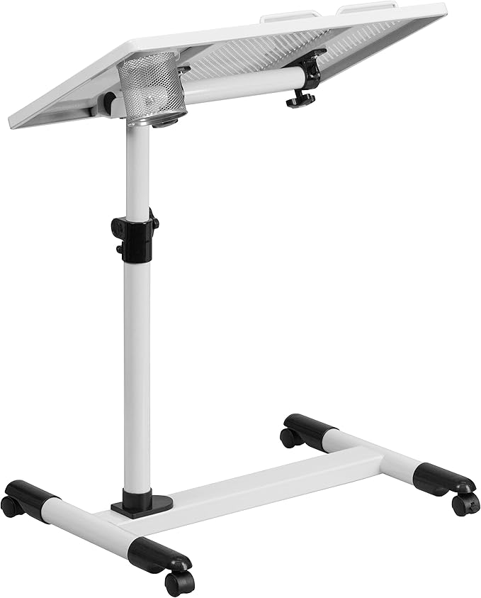 Flash Furniture Macon White Adjustable Height Steel Mobile Computer Desk