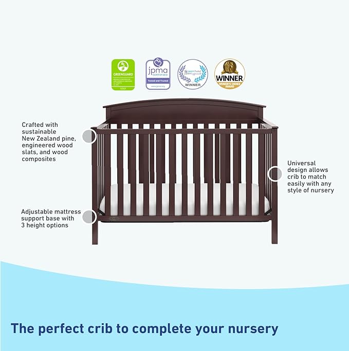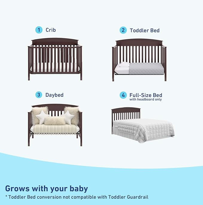 Graco Benton 5-in-1 Convertible Crib (Espresso) – GREENGUARD Gold Certified, Converts from Baby Crib to Toddler Bed, Daybed and Full-Size Bed, Fits Standard Full-Size Crib Mattress