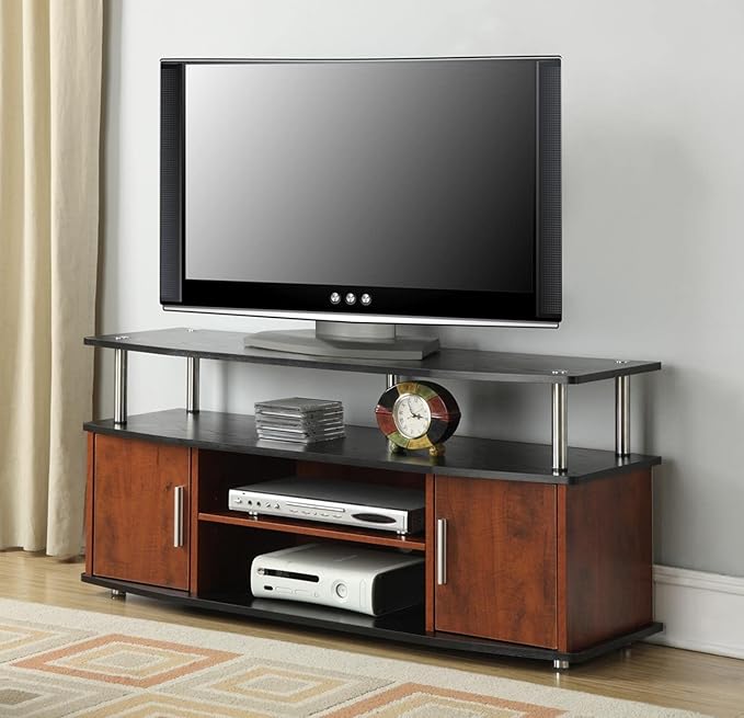 Convenience Concepts Designs2Go Monterey TV Stand with Cabinets and Shelves Home_Furniture_and_Decor, 47.25", Cherry/Black