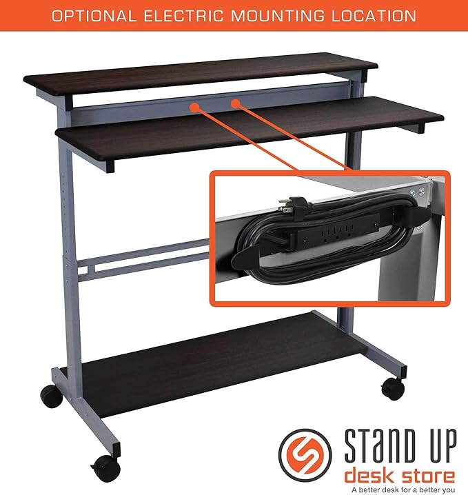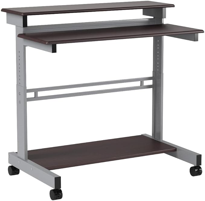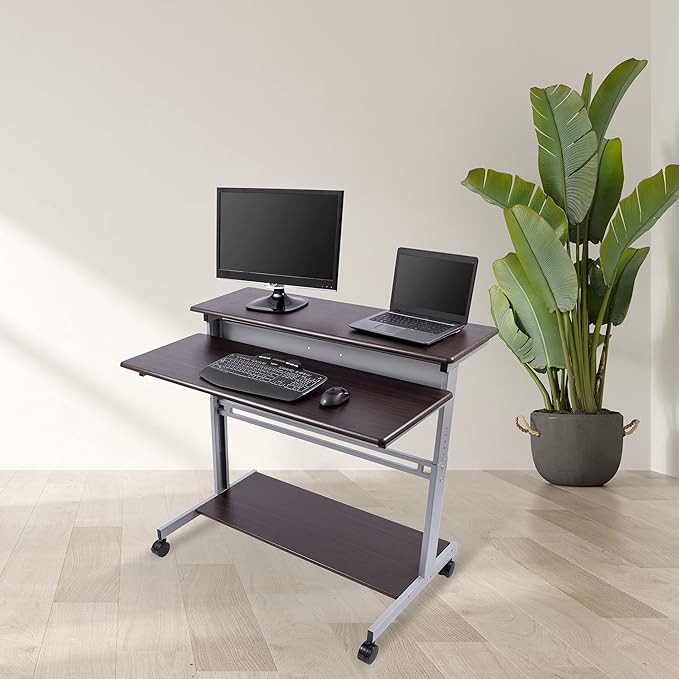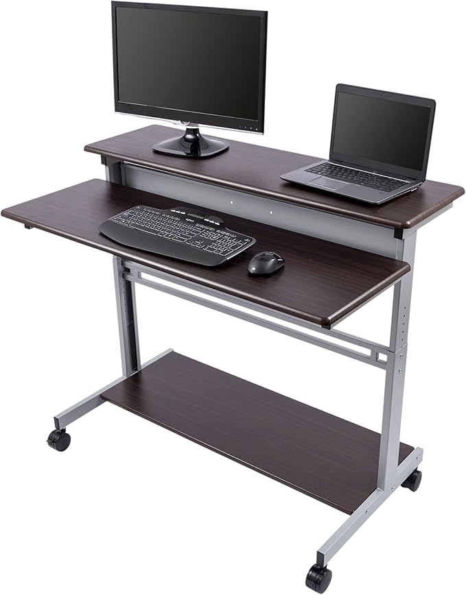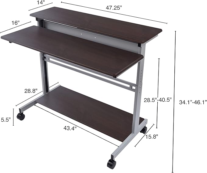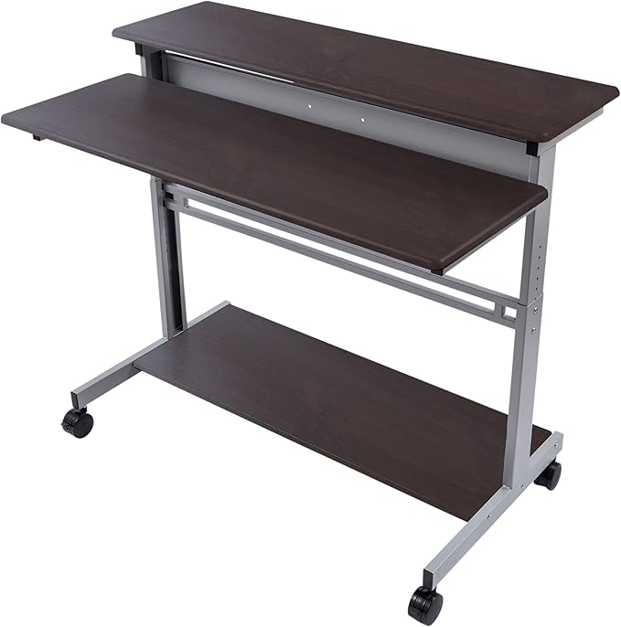 Stand Up Desk Store Rolling Adjustable Height Two Tier Standing Desk Computer Workstation (Silver Frame/Dark Walnut Top, 48" Wide)