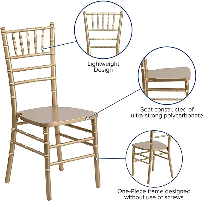 Flash Furniture Hercules Series Chiavari Chair for Formal Events and Banquets, Commercial/Residential All-Occasion Event Chair, Gold