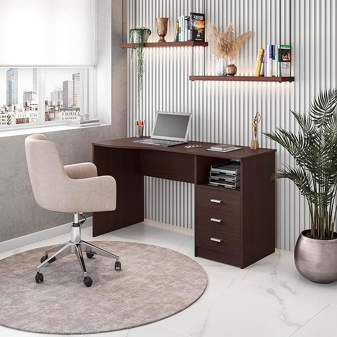 Techni Mobili Classic Computer Desk with Multiple Drawers, 29.5" x 23.6" x 51.2", Wenge