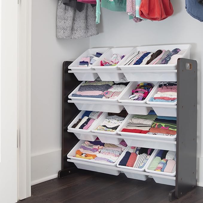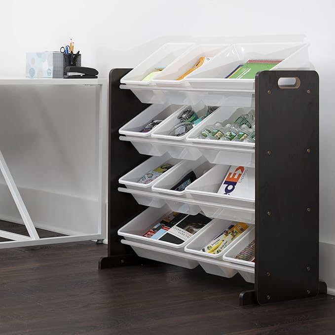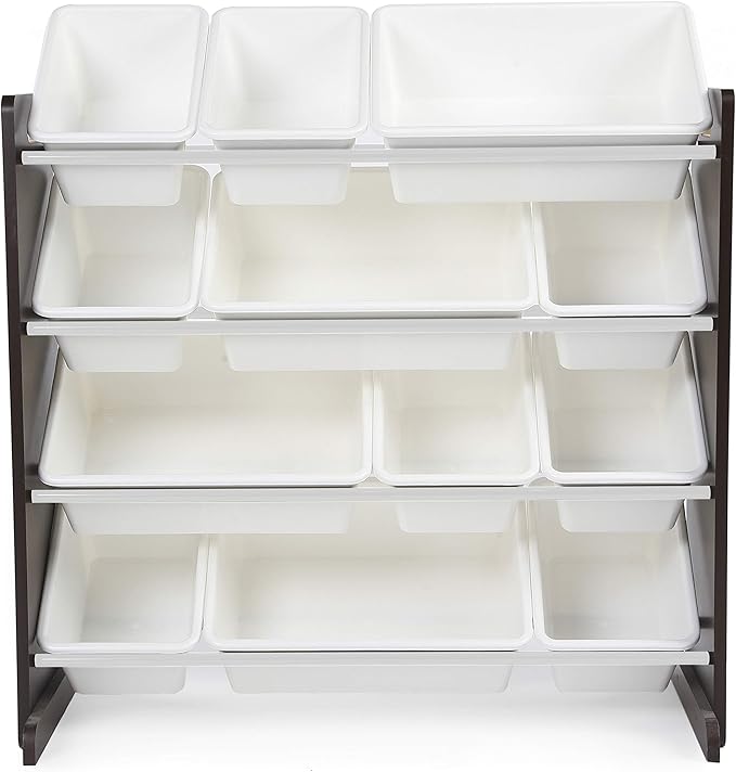 Humble Crew Modern Toy Organizer with 12 Bins, Espresso/White